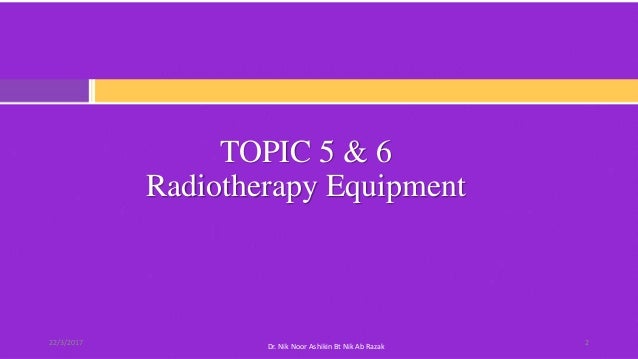 Radiotherapy Equipment Provision Equipment should be adequate to support both the workload and range of radiotherapy services required for training (2,3). It includes treatment units, radiotherapy simulators, treatment planning systems, access to CT ... Access Content